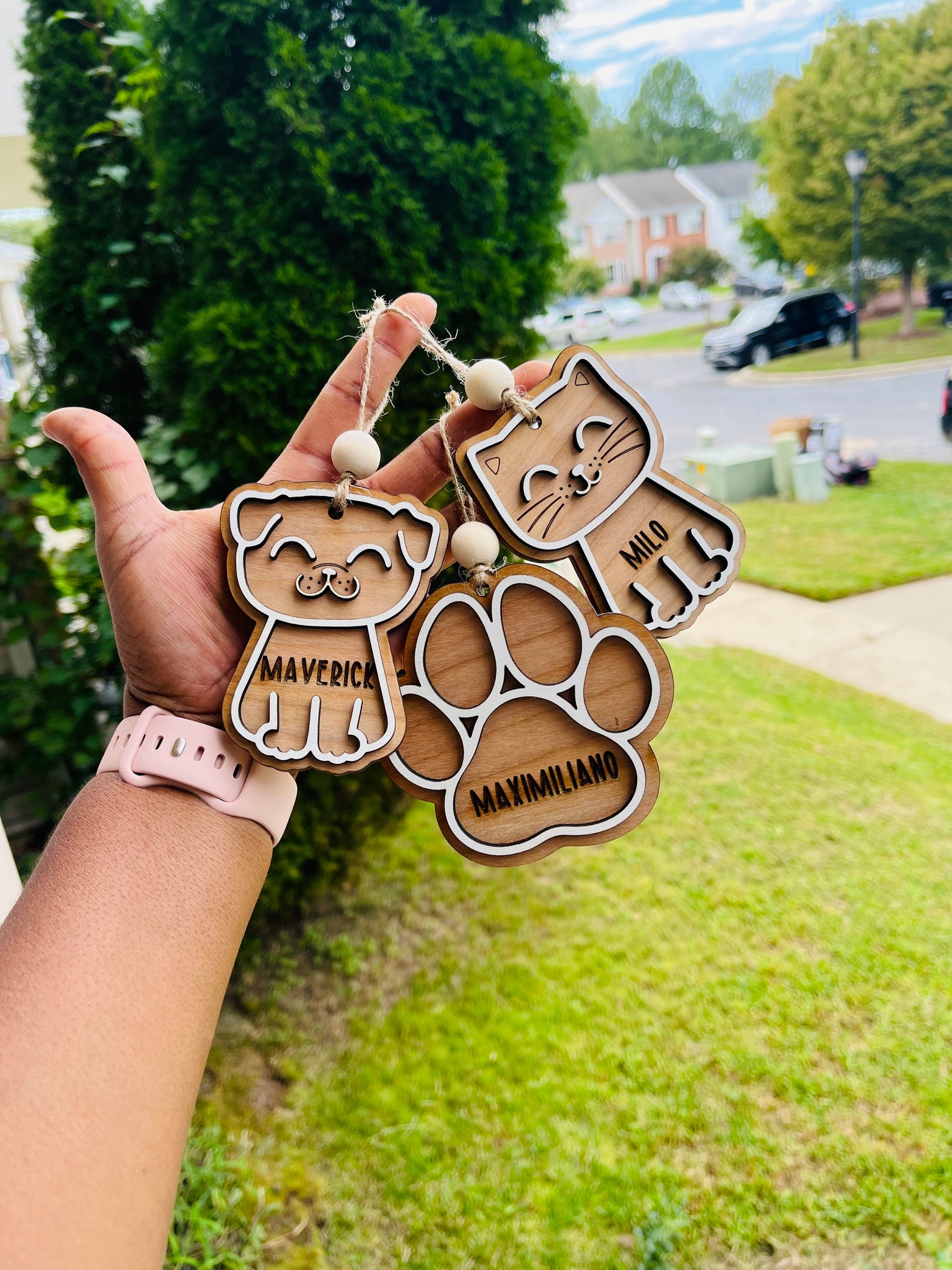 Ornament is made out of wood and has a 3D effect with an engraved finish for your pet's name.