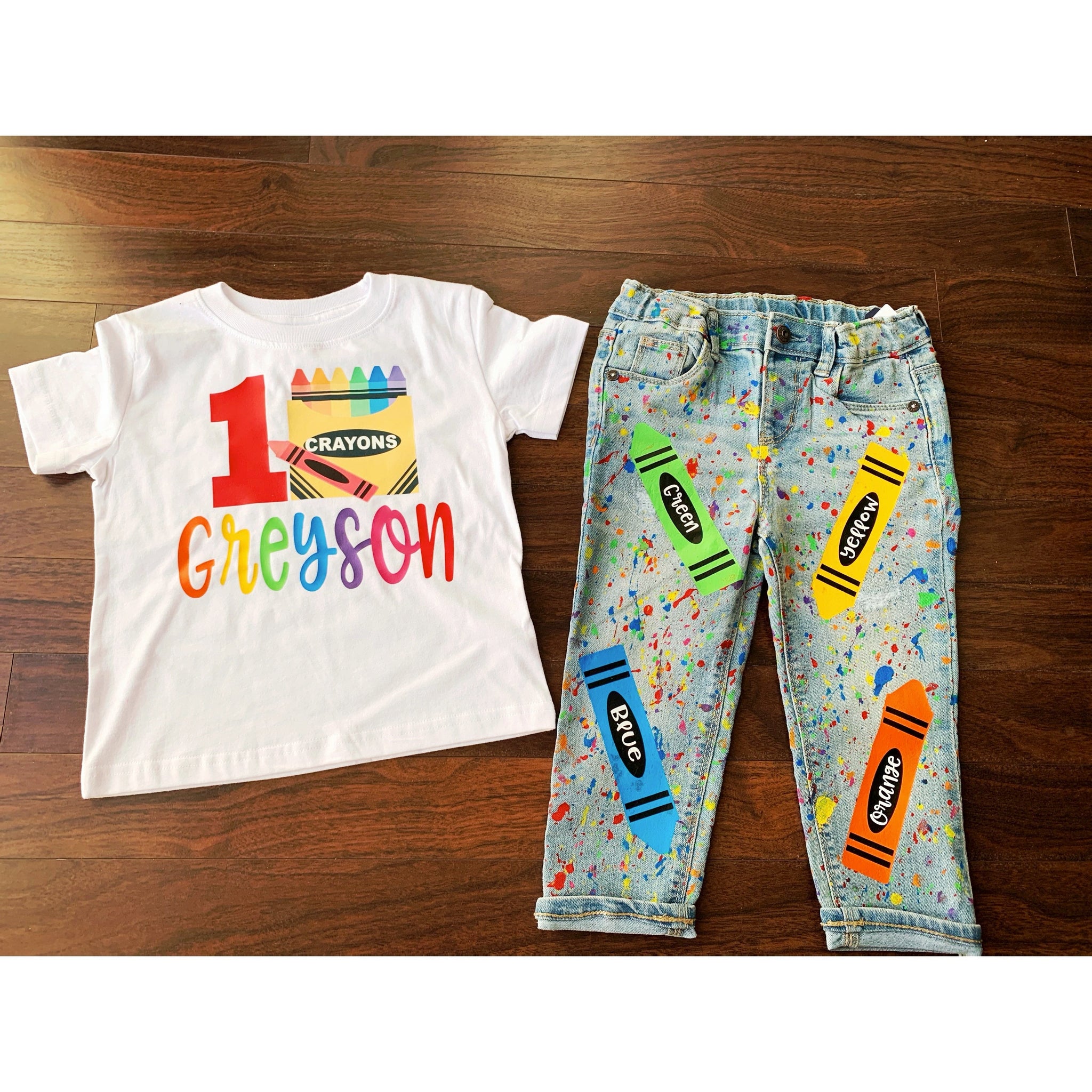 Who said the crayon sets are only for girls? At the request of customers our crayon sets have now been made for boys! These sets can be made in jeans or shorts at your request.