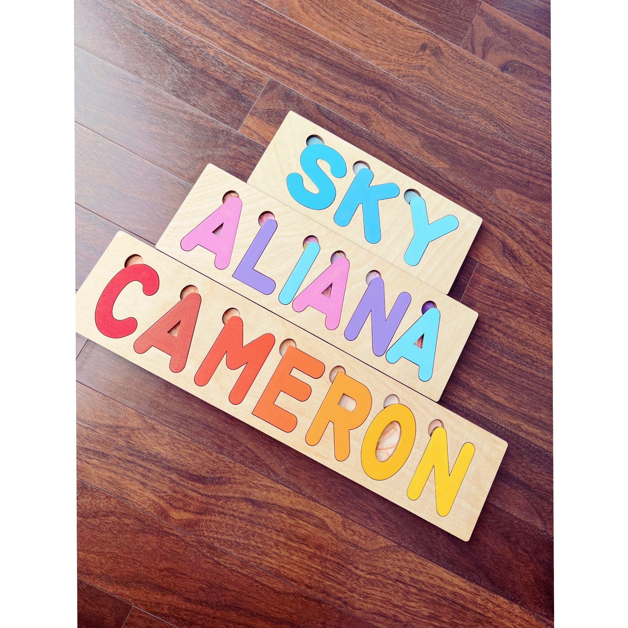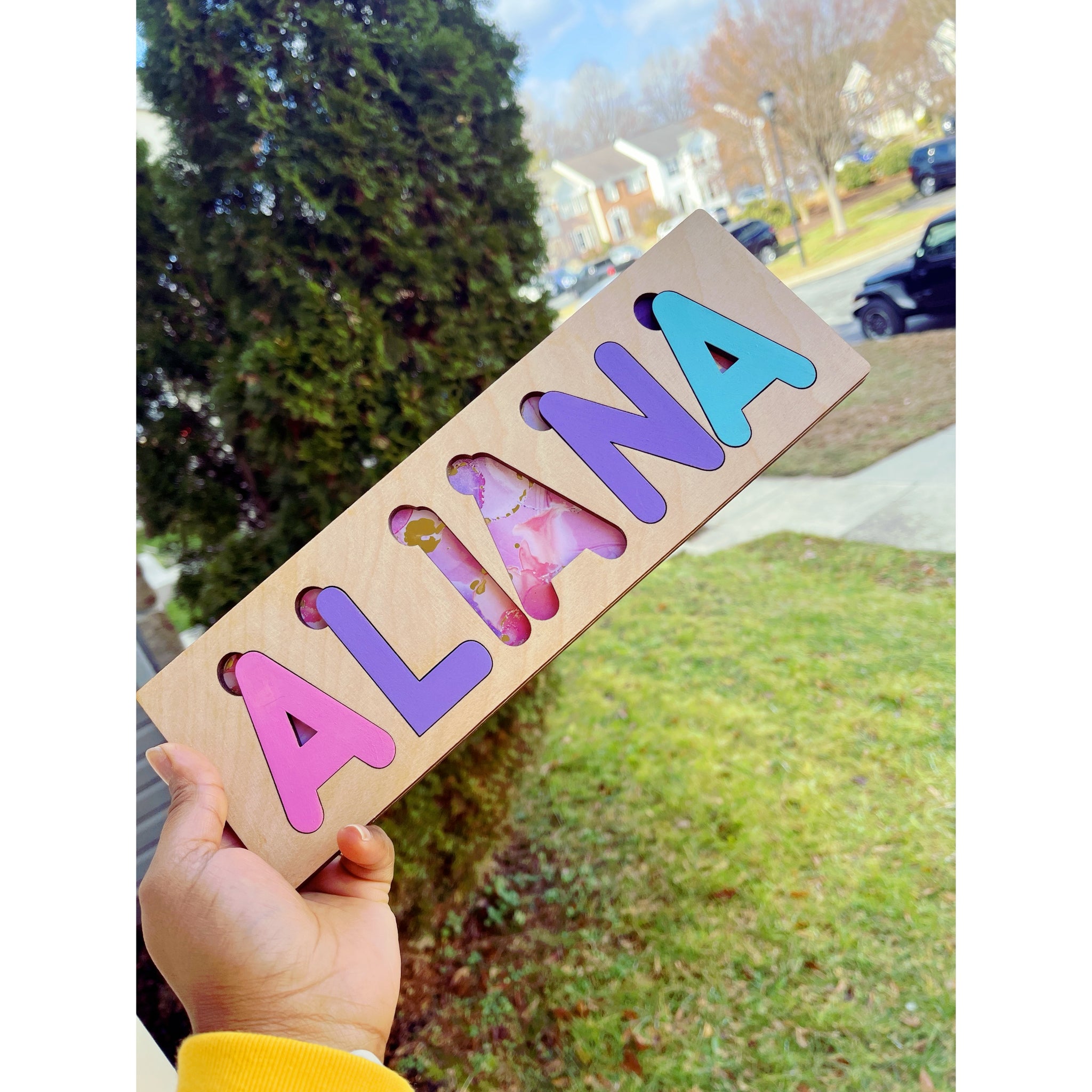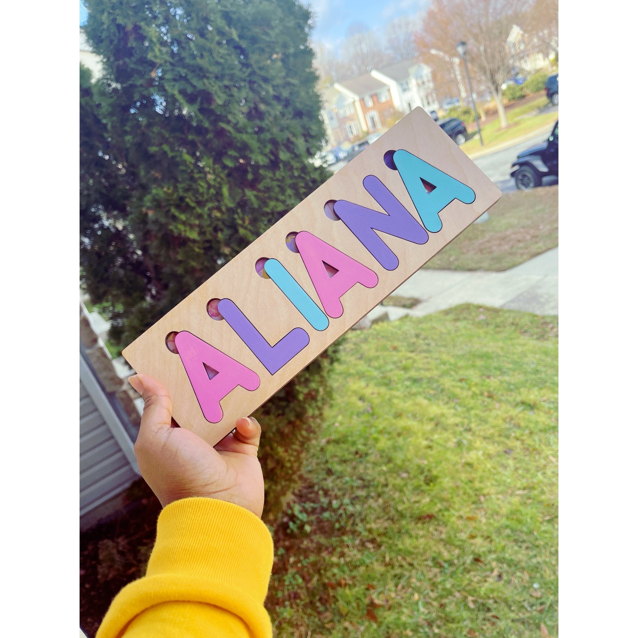 These custom name puzzles not only allows your child to simulate their brains, but it also allows them to learn their name, colors, and shapes. These puzzles have a cut out at the top which lets even the tiniest of fingers to get the letters out.