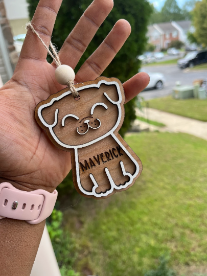 Ornament is made out of wood and has a 3D effect with an engraved finish for your pet's name.
