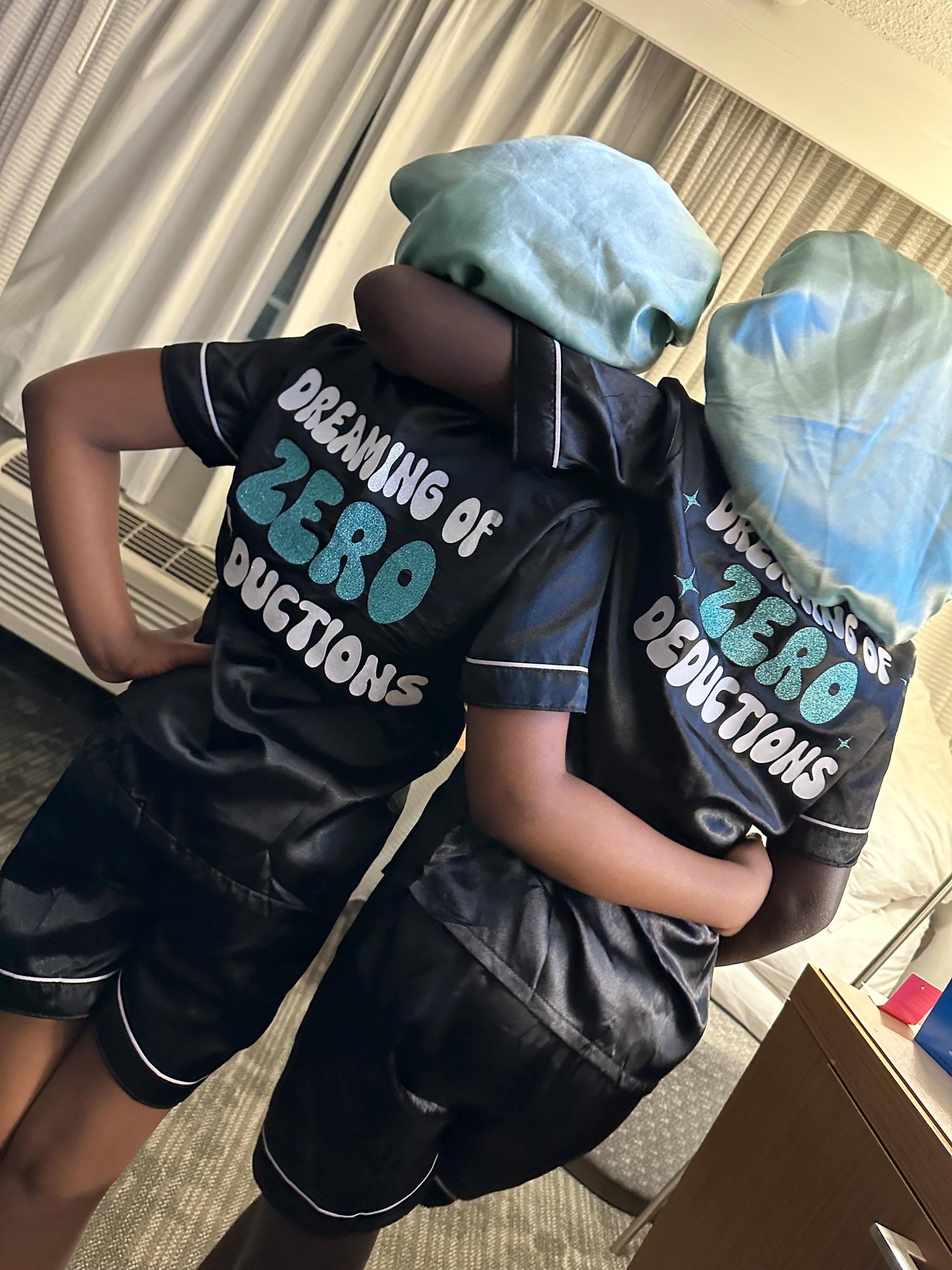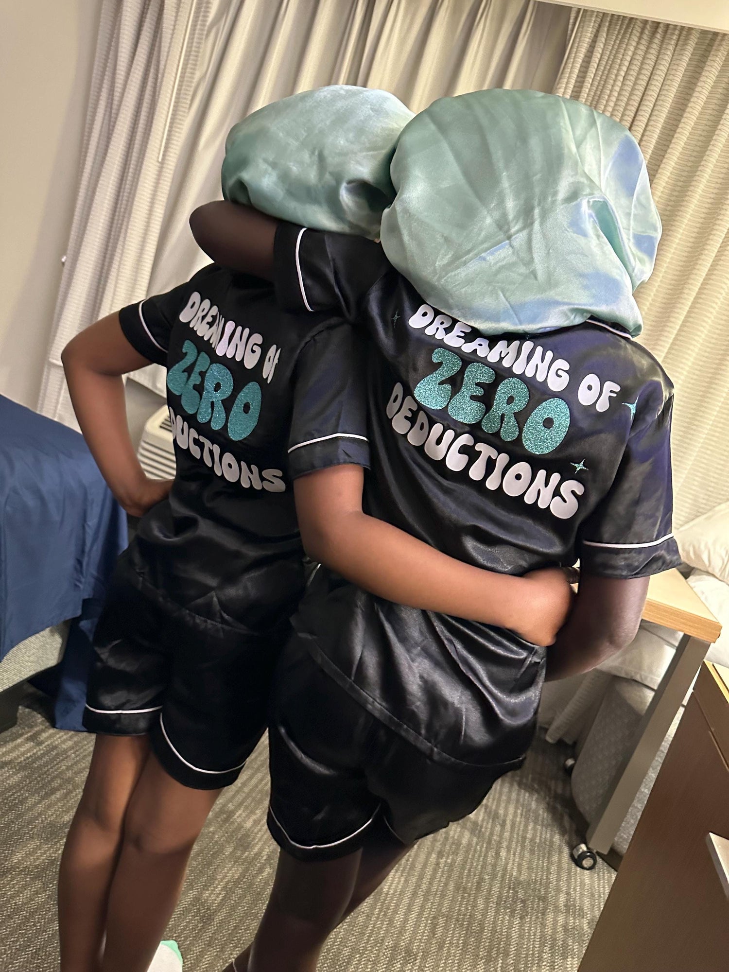 What's better than your cheerleader going to sleep in their dreaming of zero deductions pjs and waking up and HITTING ZERO! The wording color of your Pjs can be changed to match your team colors. Please leave the colors in the personalized section below or message me.