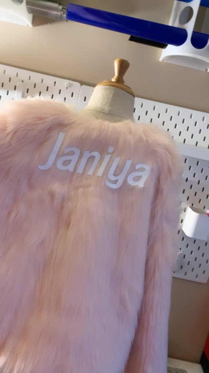 PLEASE NOTE THAT THE NAME IS ADDED DIRECTLY TO THE FUR. THIS MEANS WHEN THE FUR MOVES THE NAME WILL MOVE ALONG WITH THE FUR.