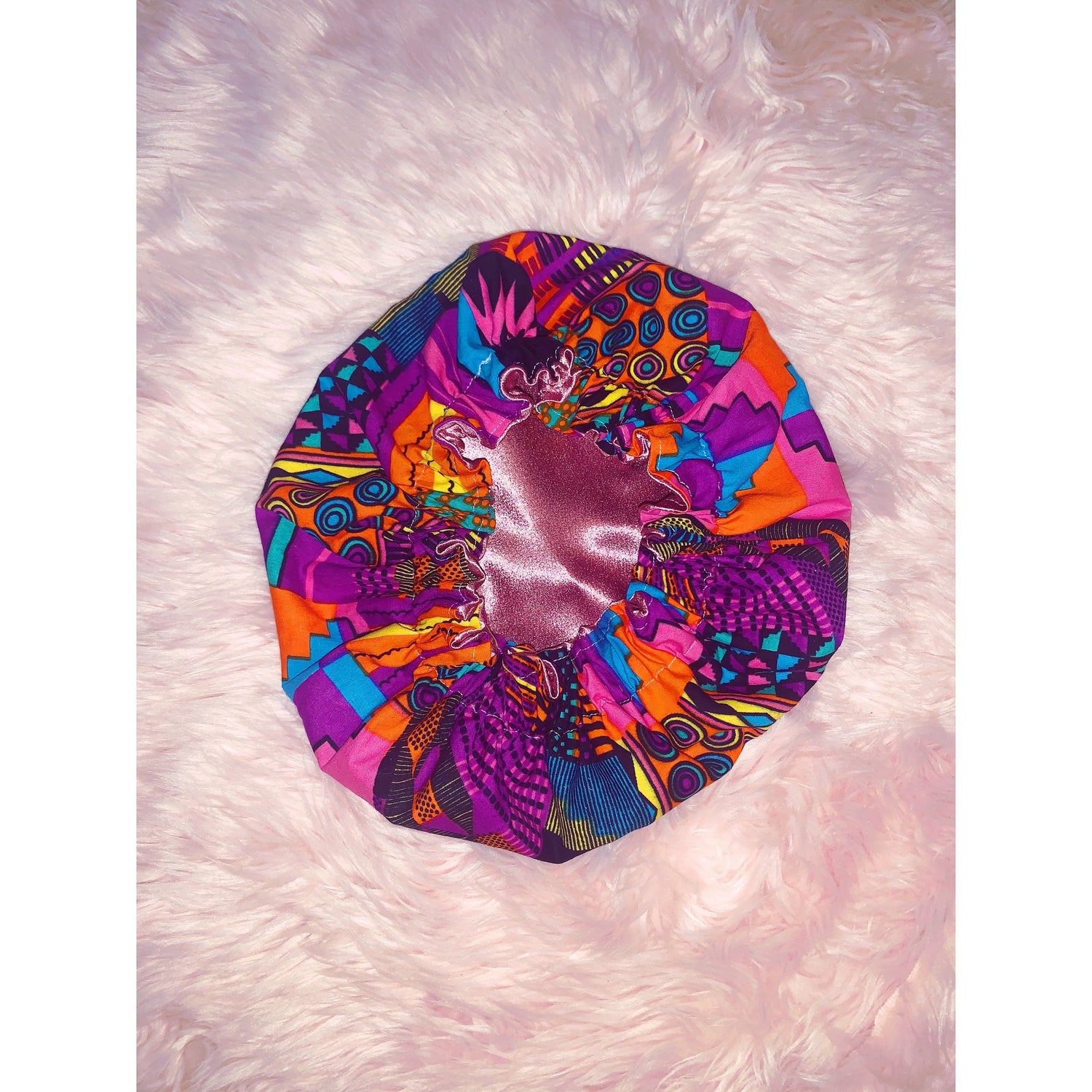 Pink Kente Bonnets are one of our best sellers they go quick! These bonnets are made with African kente print and a satin lined inside to keep your hair protected. Each bonnet is made from scratch with love and black girl magic. These bonnets come in a varity of sizes ranging from newborn to adults also available in Mommy and me sets. If you are placing an order for a toddler with a lot/thick hair, i suggest going up in size (Toddler SIZE UP option).