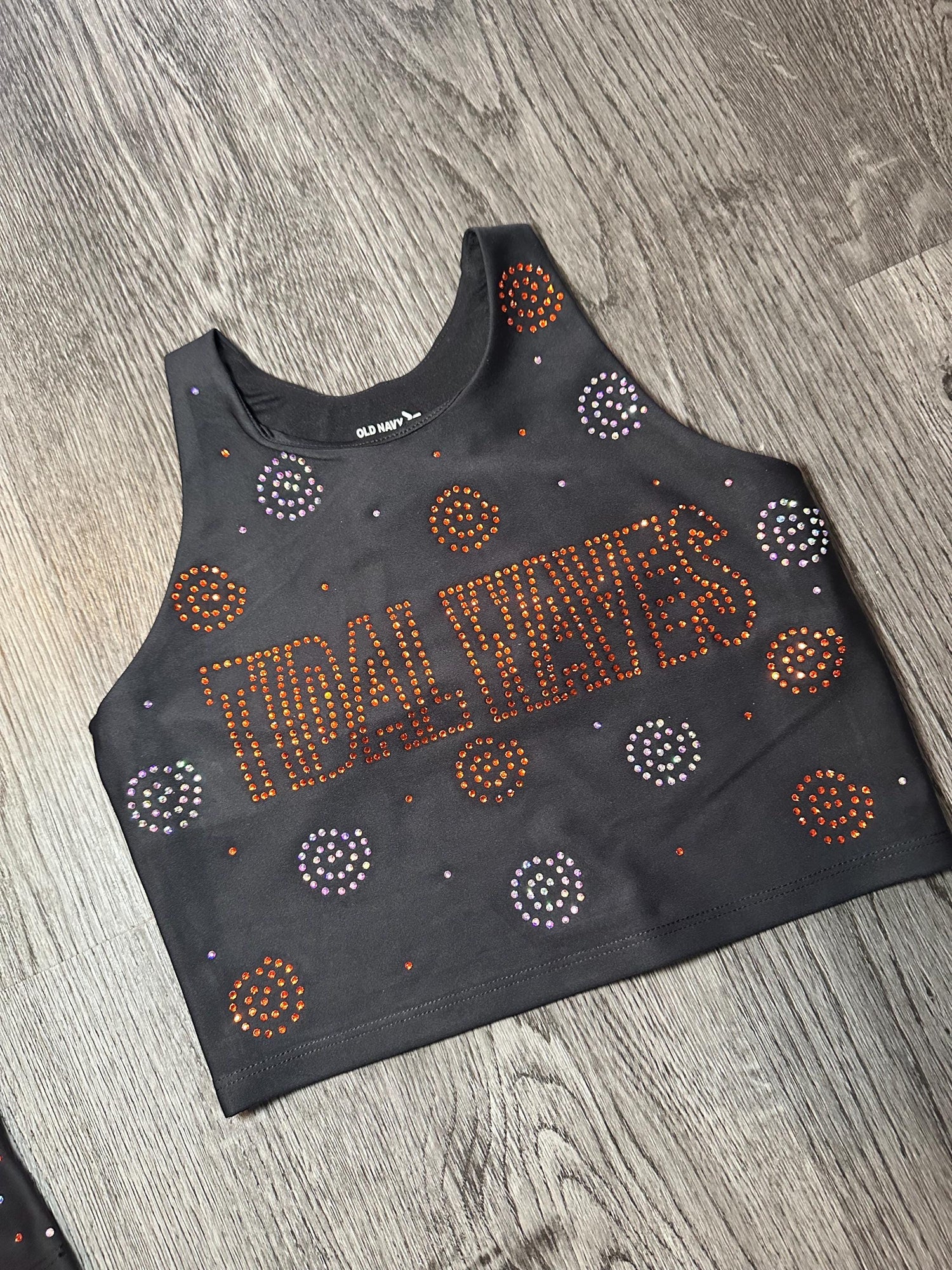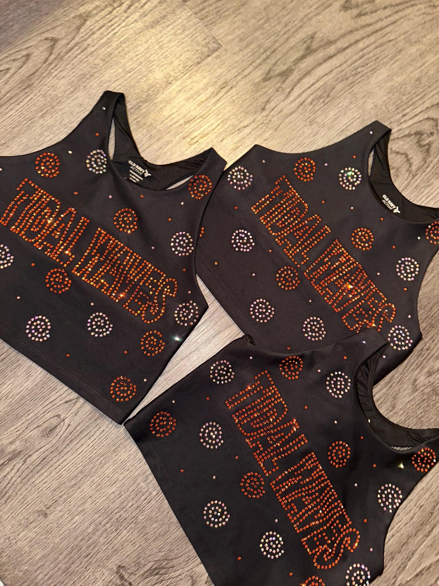 Shine bright with a custom rhinestone crop top from Kendra’s Kustoms, handmade just for you! Each piece is crafted from high-quality, comfortable fabric and covered in dazzling rhinestones that sparkle from every angle. Perfect for cheer teams, dance squads, game day fits, or everyday glam, this top can be fully personalized with your team name, nickname, or custom design. Every crystal is hand-placed for long-lasting shine and a unique, one-of-a-kind look. Youth sizes XS-XL are available. If you need an adult size, please send me a message.