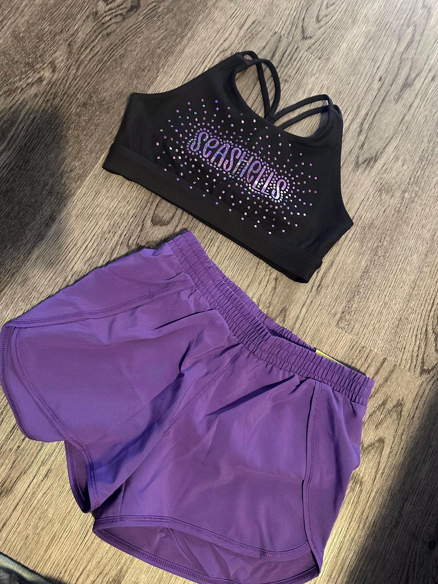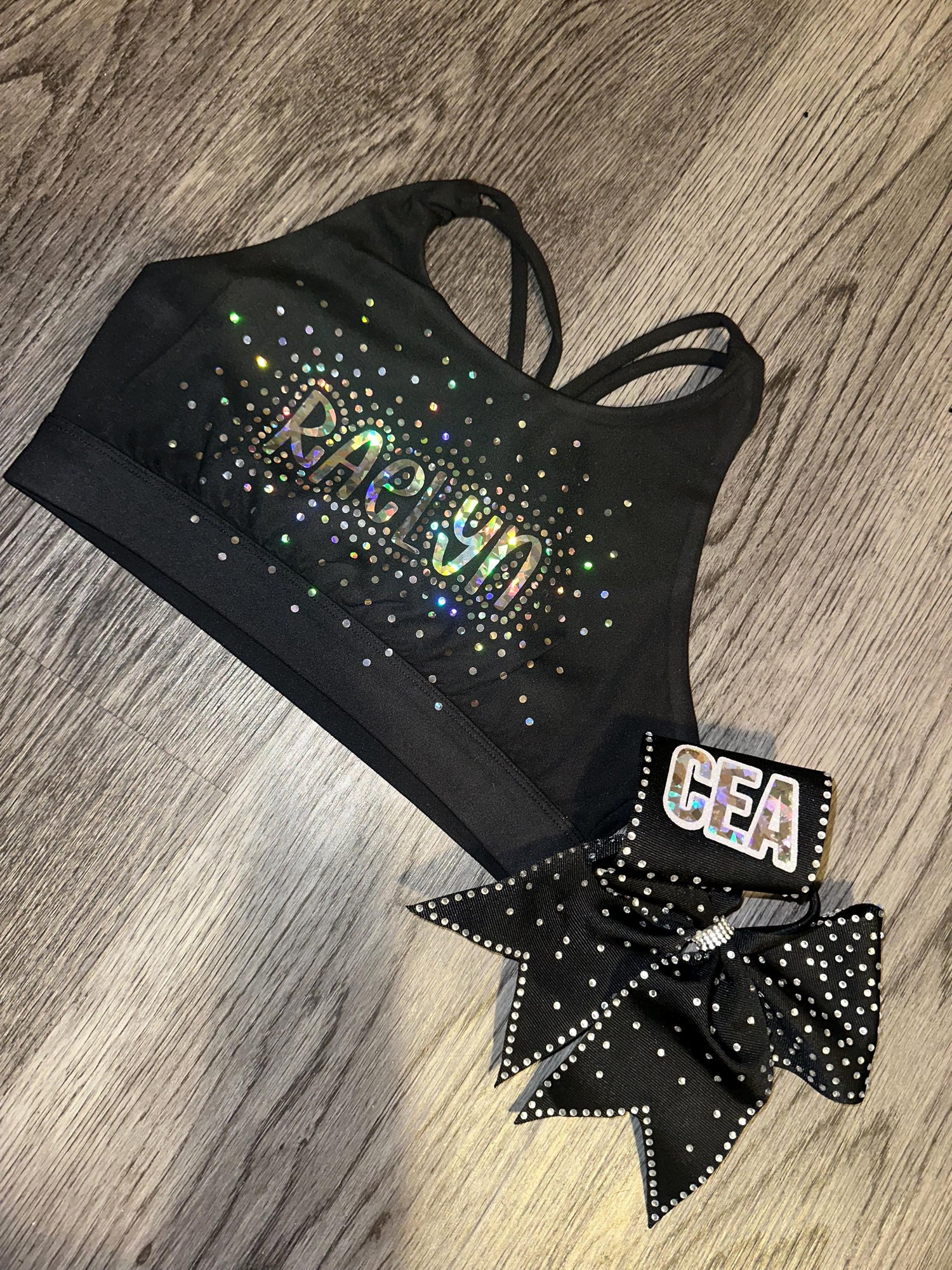 FAUX RHINESTONE HOLOGRAPHIC sports bra.